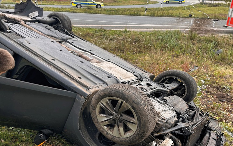 Beim Erkennen der Polizei setzte die Fahrzeugführerin sofort wieder ihre Flucht fort. Mit Geschwindigkeit deutlich über 200 km/h versuchte die Fahrzeugführerin sich den polizeilichen Maßnahmen zu entziehen. Im Bereich der Anschlussstelle Derneburg wollte die Flüchtende schließlich die BAB 7 verlassen. Aufgrund der viel zu hohen Geschwindigkeit kam der Pkw im Kurvenverlauf der AS Derneburg nach links von der Fahrbahn ab, überschlug sich und blieb auf dem Dach liegen.