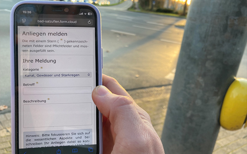 Auch per Smartphone ermöglicht der Onlinedienst „Anliegenmelder“ im Serviceportal der Stadt Bad Salzuflen, die Anliegen schnell, transparent und unkompliziert im gesamten Stadtgebiet einzubringen. © Stadt Bad Salzuflen