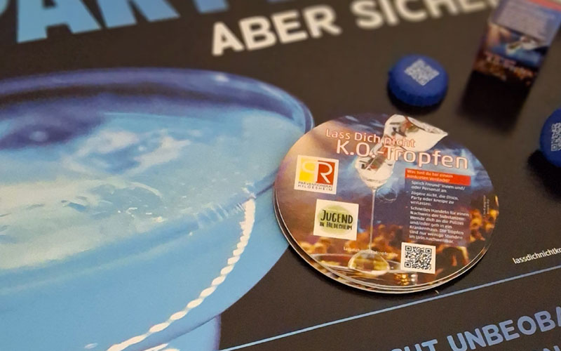 Die Materialien vermitteln niedrigschwellig Wissen zu K.O.-Tropfen, geben konkrete Tipps zum Handeln und zeigen, wie man sich gegenseitig unterstützen kann. Über einen QR-Code gelangen Interessierte zur Website der Kampagne www.lassdichnichtkotropfen.de, auf der weiterführende Informationen sowie Unterstützungsangebote vor Ort in Hildesheim zu finden sind. Die Kampagne greift eine bereits etablierte Initiative eines Fachverlags für Kinder- und Jugendschutz auf. Ziel ist es, Menschen zu sensibilisieren, über die Gefahren von K.O.-Tropfen aufzuklären und konkrete Handlungsmöglichkeiten für riskante Situationen aufzuzeigen – für sich selbst und für andere.