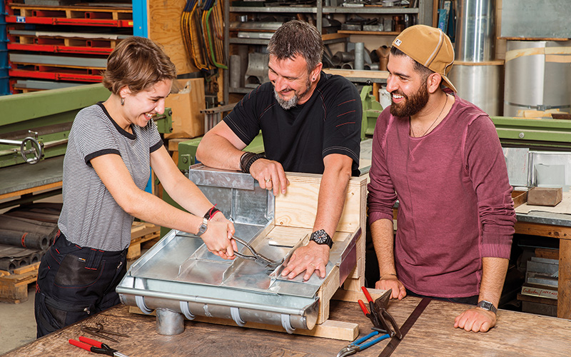 Das Dachdeckerhandwerk ist Vorreiter in Sachen Klimaschutz und Energiewende. Seit 2024 gibt es eine freiwillige Zusatzwoche in der Ausbildung, die sich intensiv mit der Planung und Installation von PV-Anlagen beschäftigt. Kein Wunder also, dass das Bundesinstitut für Berufsbildung (BIBB) den Beruf als einen von nur drei Ausbildungsberufen hervorhebt, die einen wesentlichen Beitrag zur Klimaanpassung leisten.