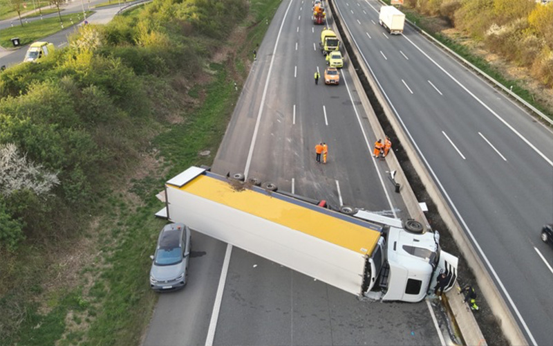 Am 16.04.2026, gegen 03:30 Uhr, befährt ein 55-Jähriger aus Bremen die BAB 7 in Richtung Hannover mit einem Sattelzug. In Höhe der genannten Unfallstelle kommt dieser aus derzeit nicht bekannter Ursache nach rechts von der Fahrbahn ab und gerät in den Grünstreifen. Anschließend fährt der Sattelzug wieder zurück auf die befestigte Fahrbahn und kippt hier auf die rechte Seite. Dadurch blockiert der Sattelzug den Stand- sowie alle Fahrstreifen der Richtungsfahrbahn Hannover. Der Fahrzeugführer wurde durch den Verkehrsunfall in seinem Führerhaus eingeschlossen und konnte unverletzt befreit werden.
